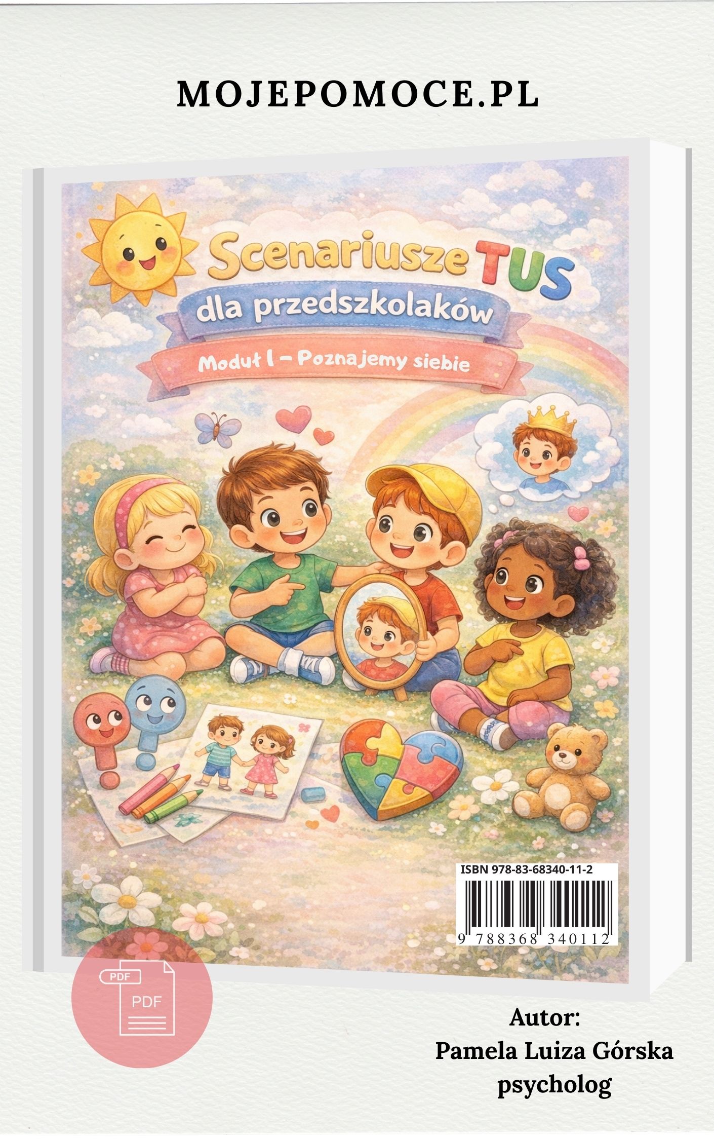 Scenariusze TUS dla Przedszkolaków Moduł 1 – Poznaj siebie, to gotowy program TUS dla przedszkolaków. 15 szczegółowych scenariuszy, metodologia i karty pracy. Dla psychologów, pedagogów i trenerów TUS.