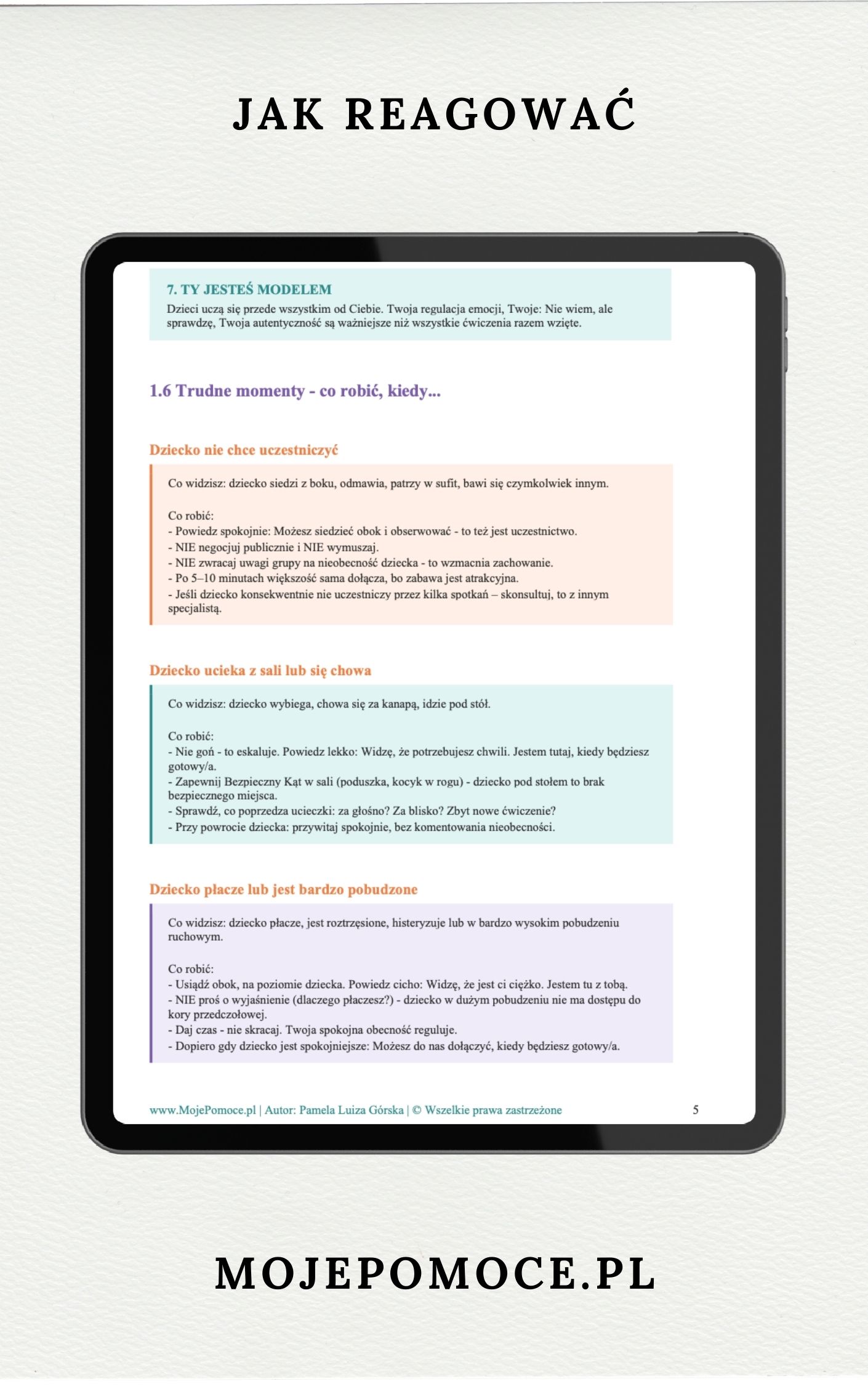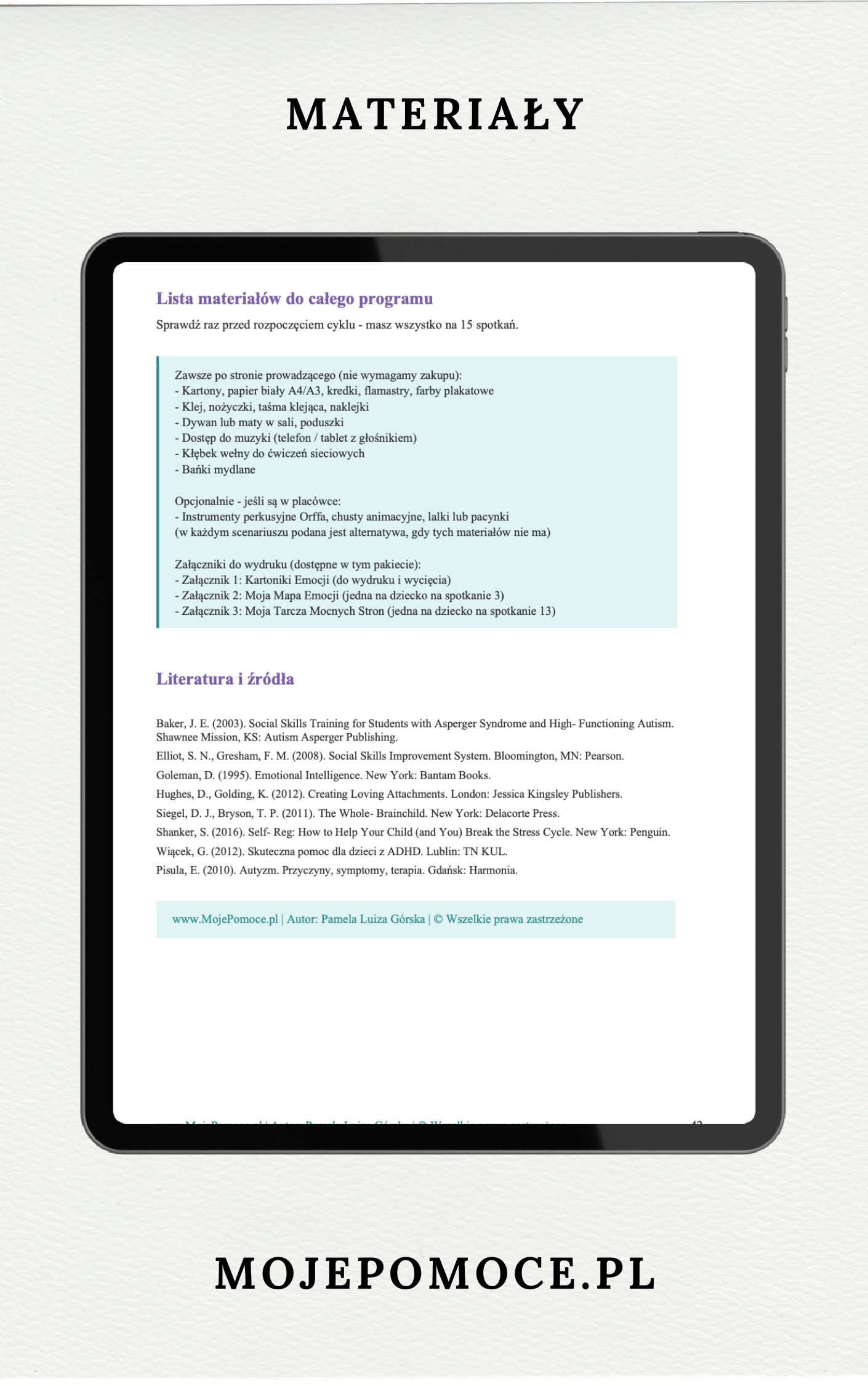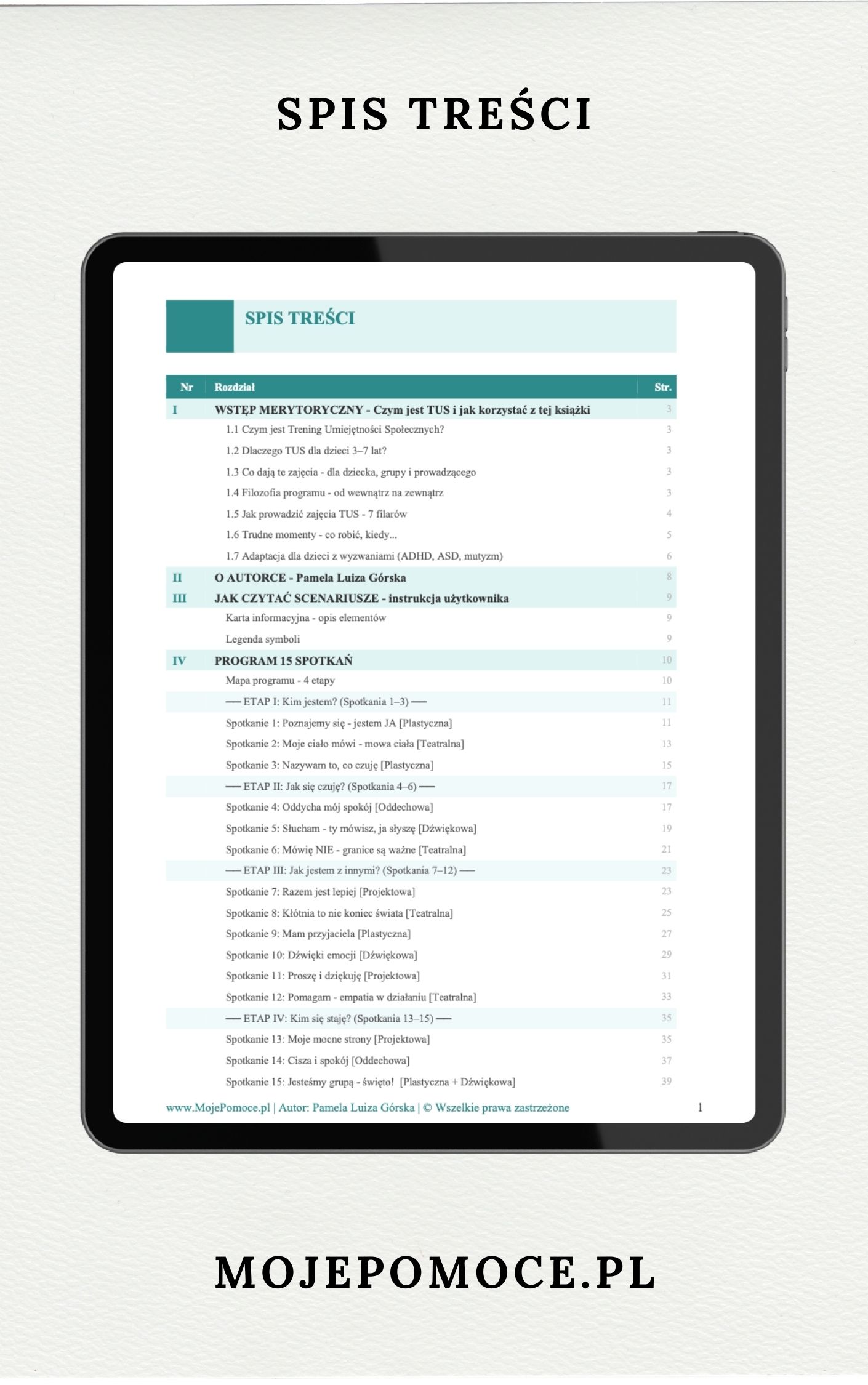 ✔ Szczegółowy przebieg każdego spotkania – napisany jak skrypt, krok po kroku, z dokładnymi wskazówkami co mówić i jak reagować na trudne momenty