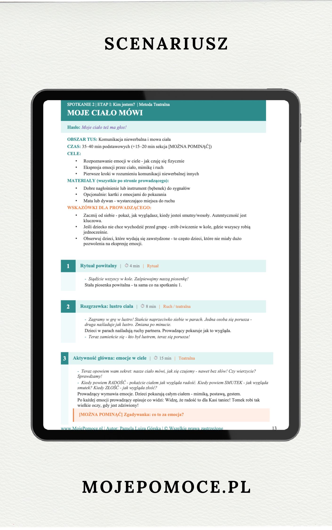 Każdy scenariusz był testowany w praktyce – w prawdziwych grupach, z prawdziwymi dziećmi. Wiesz dokładnie czego potrzebujesz, jak poprowadzić każdy etap i co zrobić gdy coś pójdzie nie tak. Nie musisz się domyślać – masz to napisane.